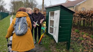 Op 11 maart heeft onze burgemeester de Bloemenbuurt bezocht. Onze werkgroep ‘Groen en Sociaal’ had een wandeling door de wijk georganiseerd. We begonnen met een hartelijke ontvangst in de kinderboerderij met een kopje koffie in het keukentje. Het was woensdagmiddag en de kinderboerderij was vol met vrijwilligers en kinderen! Erg gezellig en het begin was meteen al geslaagd. Daarop liepen we langs de weggeefkast en de bakken met plantjes (het plantenasiel) waar ook de burgemeester iets in de kast en plantjes uit eigen tuin in de bakken heeft gezet. Vervolgens ging het via de sluisjes van ‘Nederland Waterland’ naar het vernieuwde hofje aan de Crocusstraat. We stonden stil bij de plek van de grote brand in de Begoniastraat en liepen door naar het parkje van de Bloemenbuurt. Daar gaven we uitleg over het warmtenet en pauzeerden even bij het bordje ter nagedachtenis aan Fer Coenders. Vervolgens was de burgemeester, samen met de dames van Groen en Sociaal, welkom bij een bewoonster van een van de vernieuwde huizen van Plavei. Daar is uitgebreid gesproken over hoe het huis en de buurt nu bevallen. Als laatste liepen we nog even door de Rozenstraat en keken we naar de bloemenperkjes in de gemeenteplantsoenen die nu door de bewoners zelf gezamenlijk onderhouden worden. Wij en zeker ook de burgemeester en haar collega, vonden het een erg gezellige en waardevolle ontmoeting!
